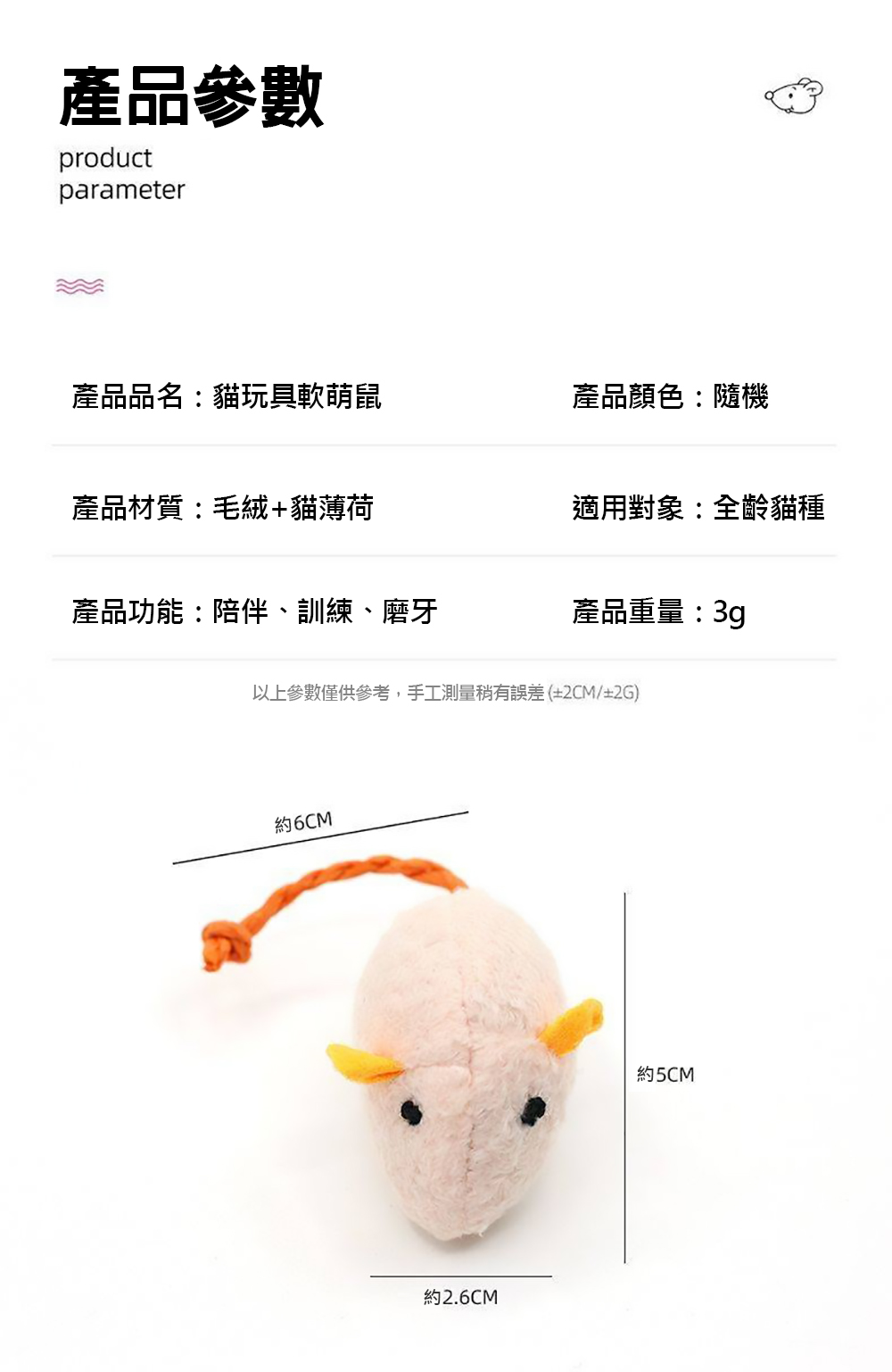 【特色】 可愛小老鼠造型:模擬獵物,滿足貓咪天性,讓玩耍更有趣。 自嗨解悶神器:即使主人不在家,貓咪也能自嗨玩耍,減少焦慮。 耐抓耐咬:選用安全材質製作,能承受貓咪撲咬、拍打。 互動陪伴:主人可以和貓咪一起玩,增進感情。 輕巧好攜帶:小尺寸,方便收納,貓咪隨時可以撲咬玩樂。 【詳情】 https://runahana.com/wp-content/uploads/2025/09/02.mp4 重量 0.002 公斤 尺寸 5.5 × 5.5 公分