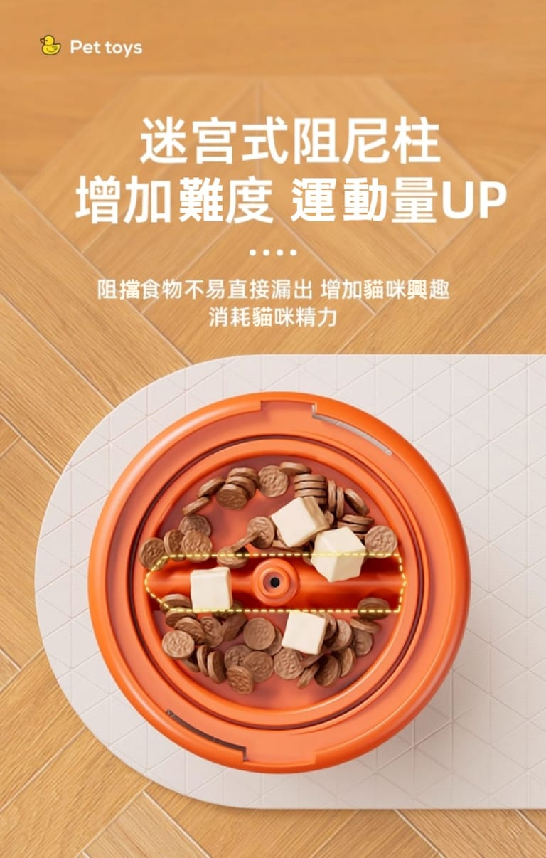 漏食設計:邊玩邊掉飼料或零食,激發狗狗、貓咪的狩獵與探索本能。