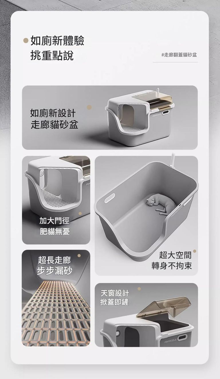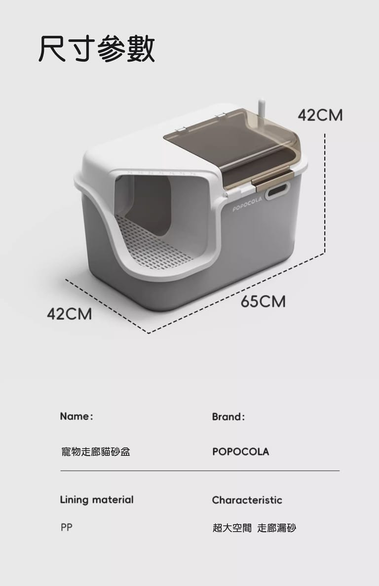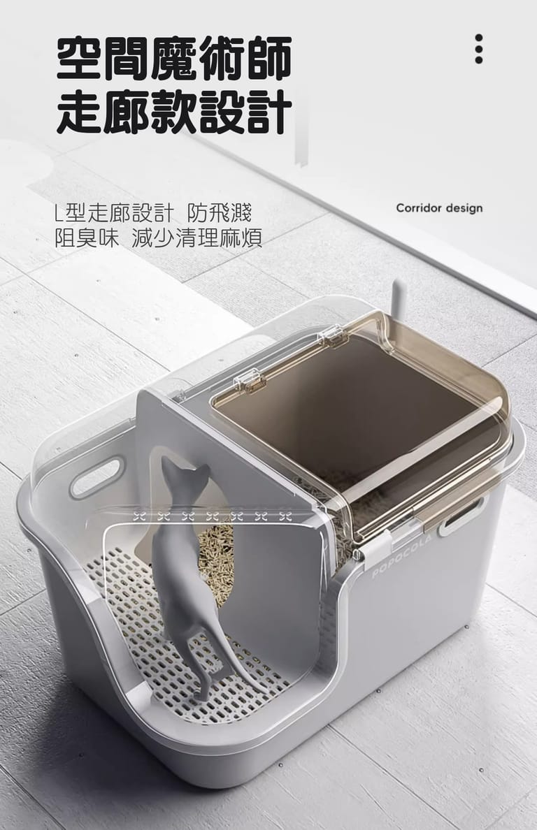 【POPOCOLA】走廊式全封閉超大貓砂盆(附貓砂鏟)