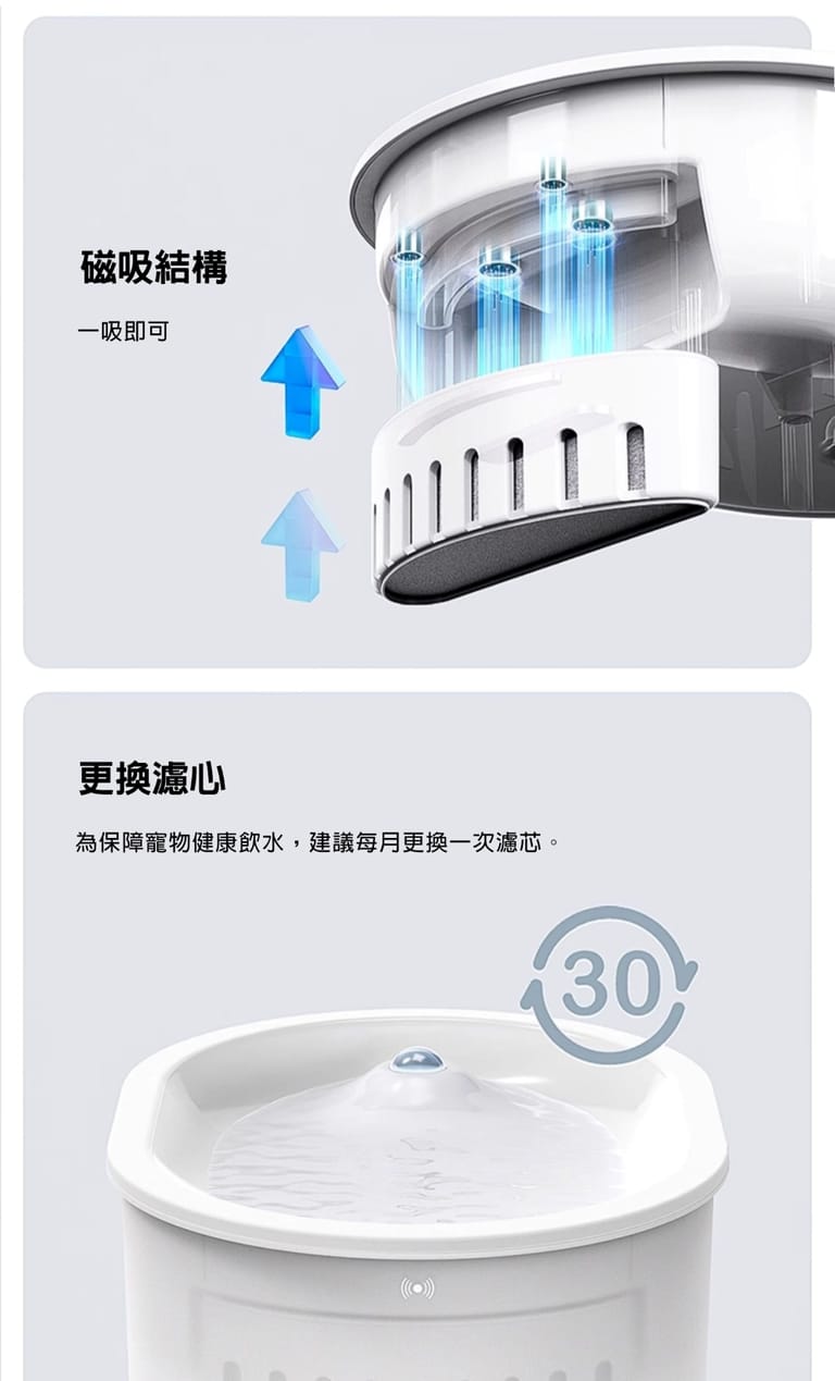 磁吸濾心設計 升級更方便:濾芯採用磁吸式安裝,秒拆秒裝,對準即吸附,換濾超輕鬆。