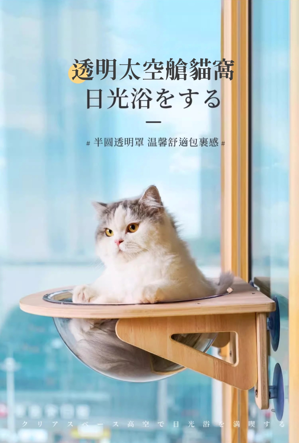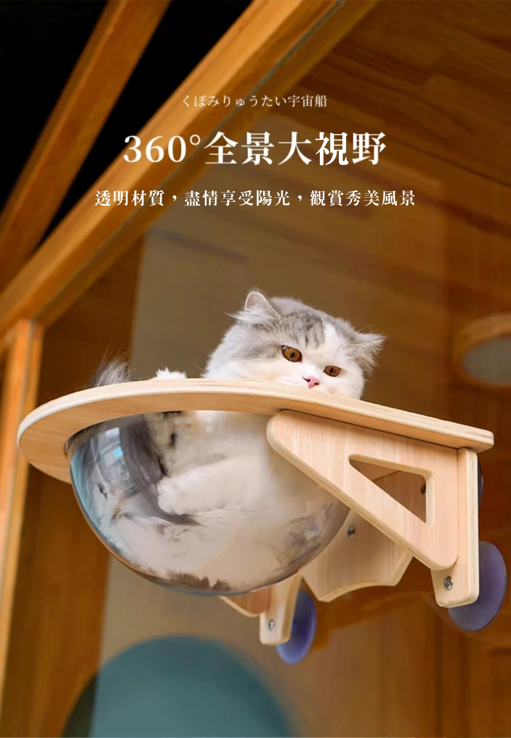 透明太空艙視野:360°全景設計,貓咪可盡情看窗外風景,滿足好奇心。