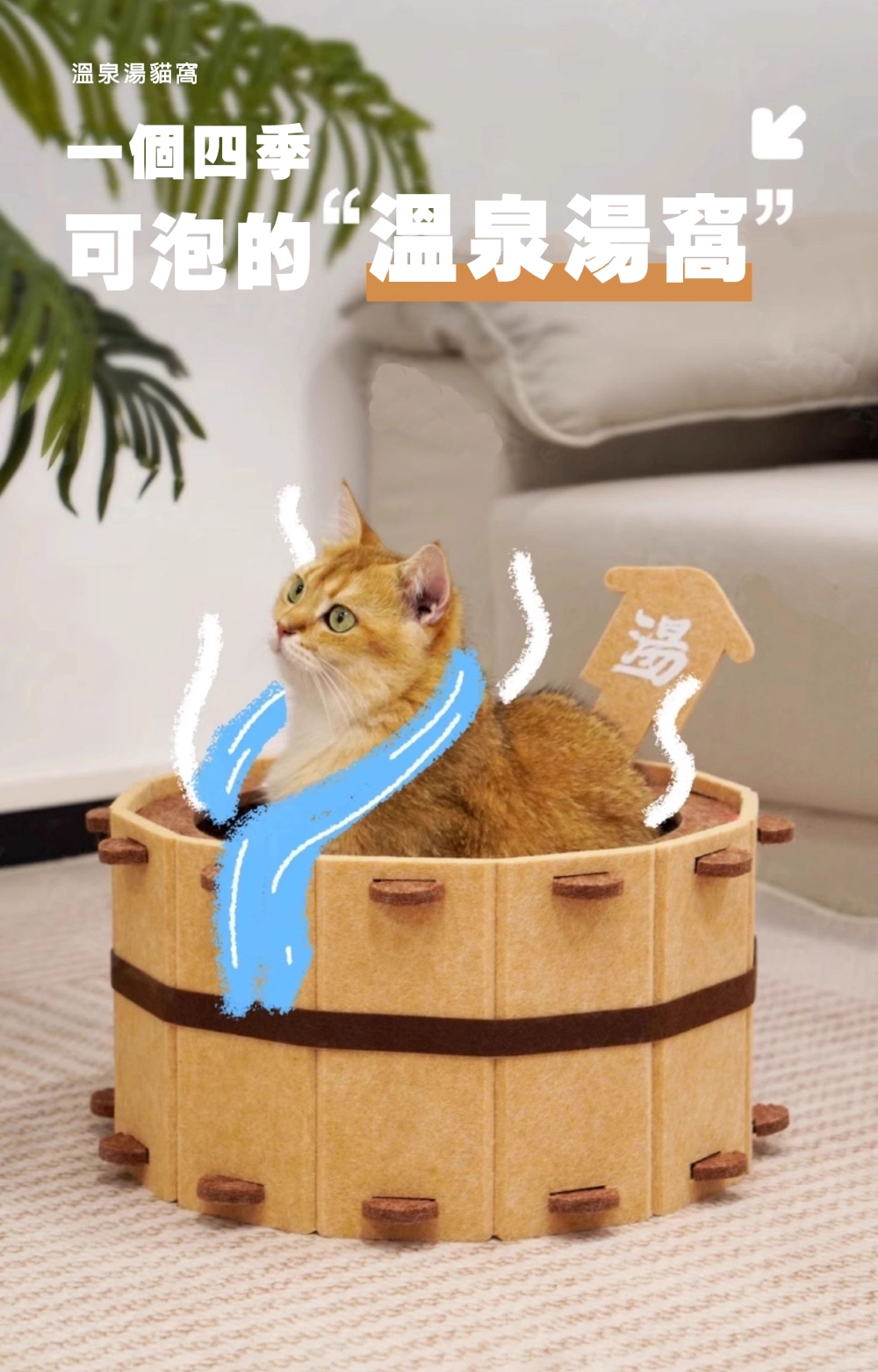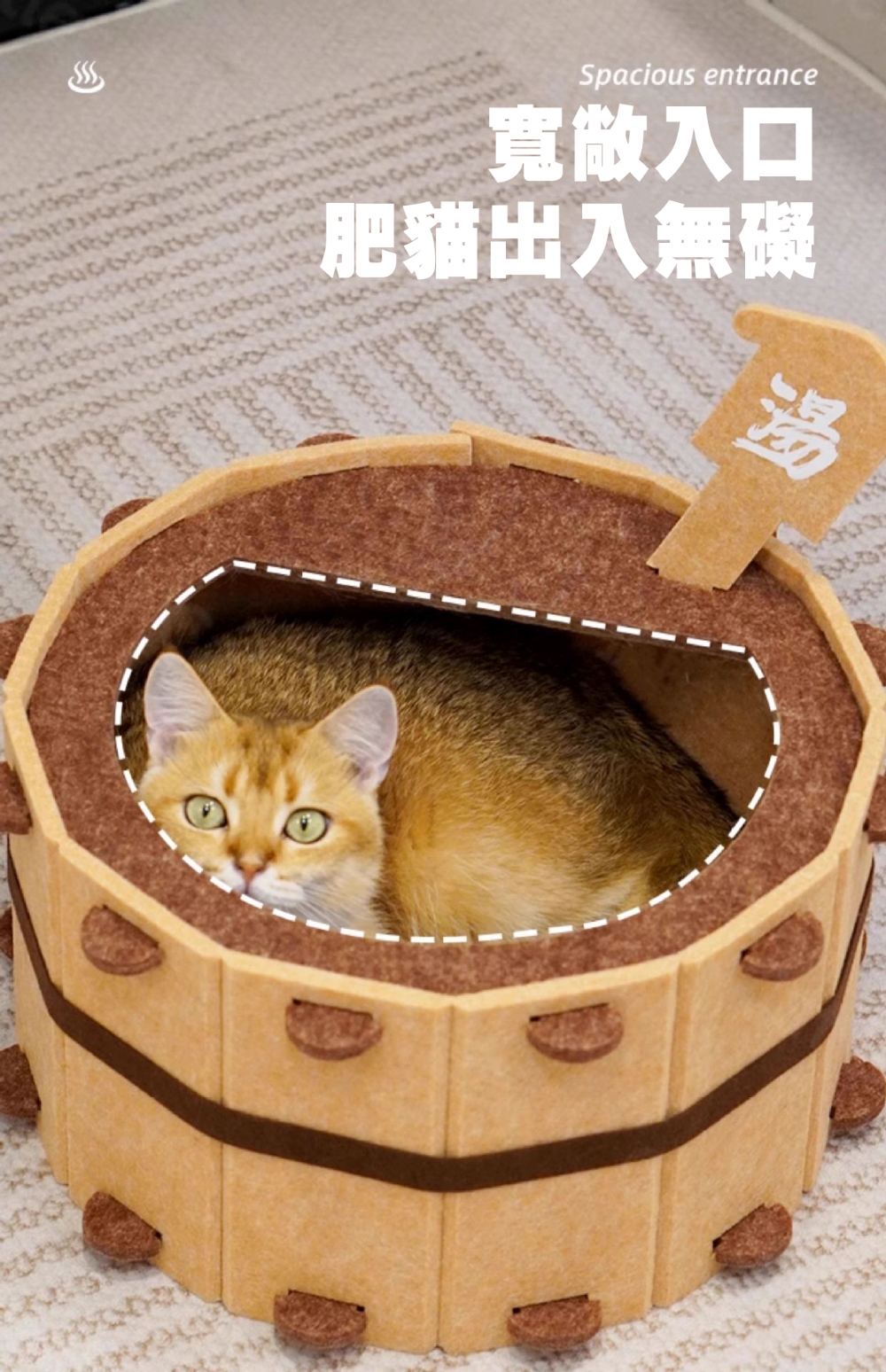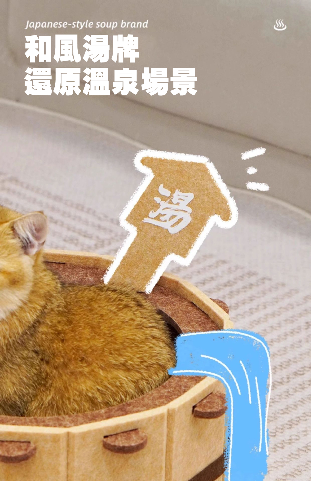 ♨️ 溫泉湯屋造型 超萌療癒:仿溫泉池設計,貓咪窩進去像泡湯一樣放鬆可愛,瞬間融化鏡頭!