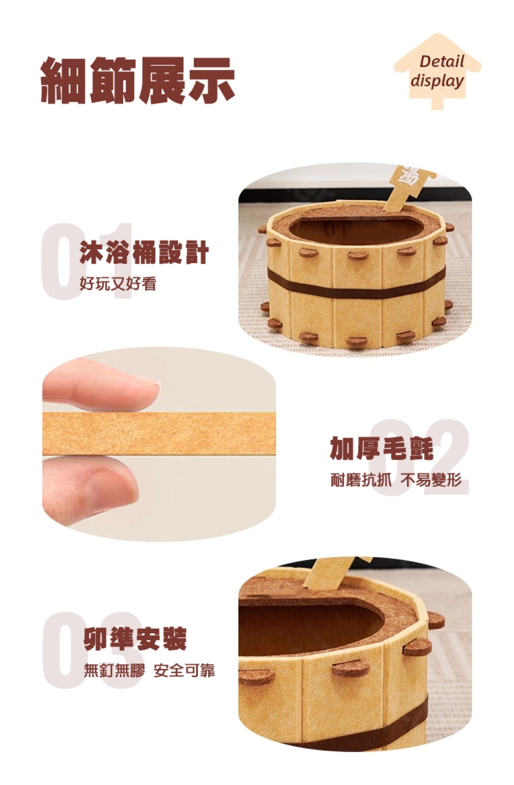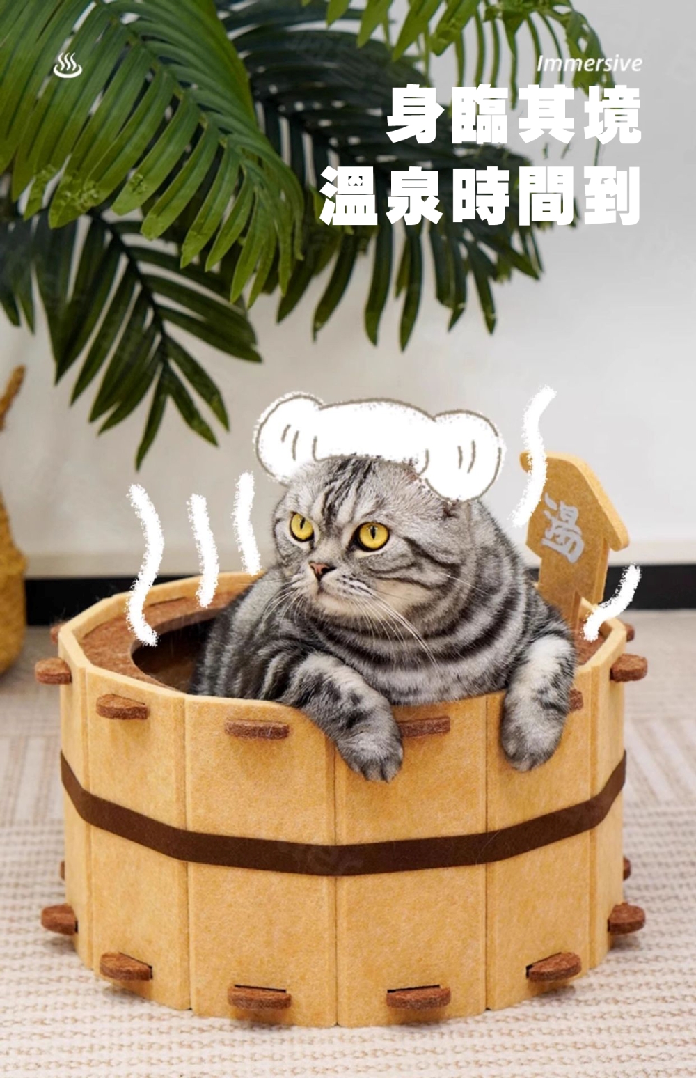 ♨️ 也是貓抓板 一窩多用:結合磨爪+休息雙功能,讓貓咪在「泡湯」同時開心磨爪。