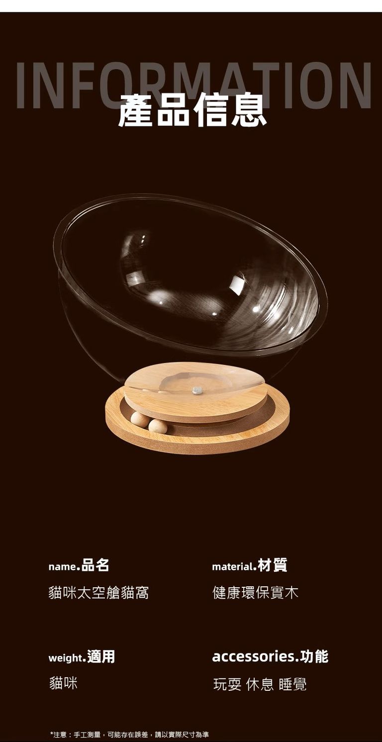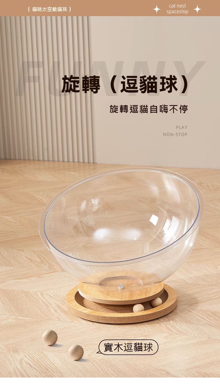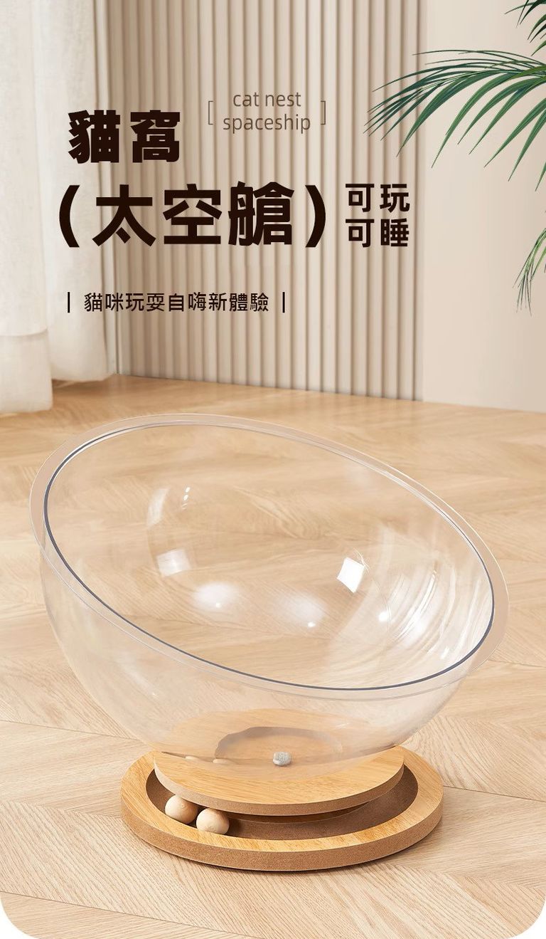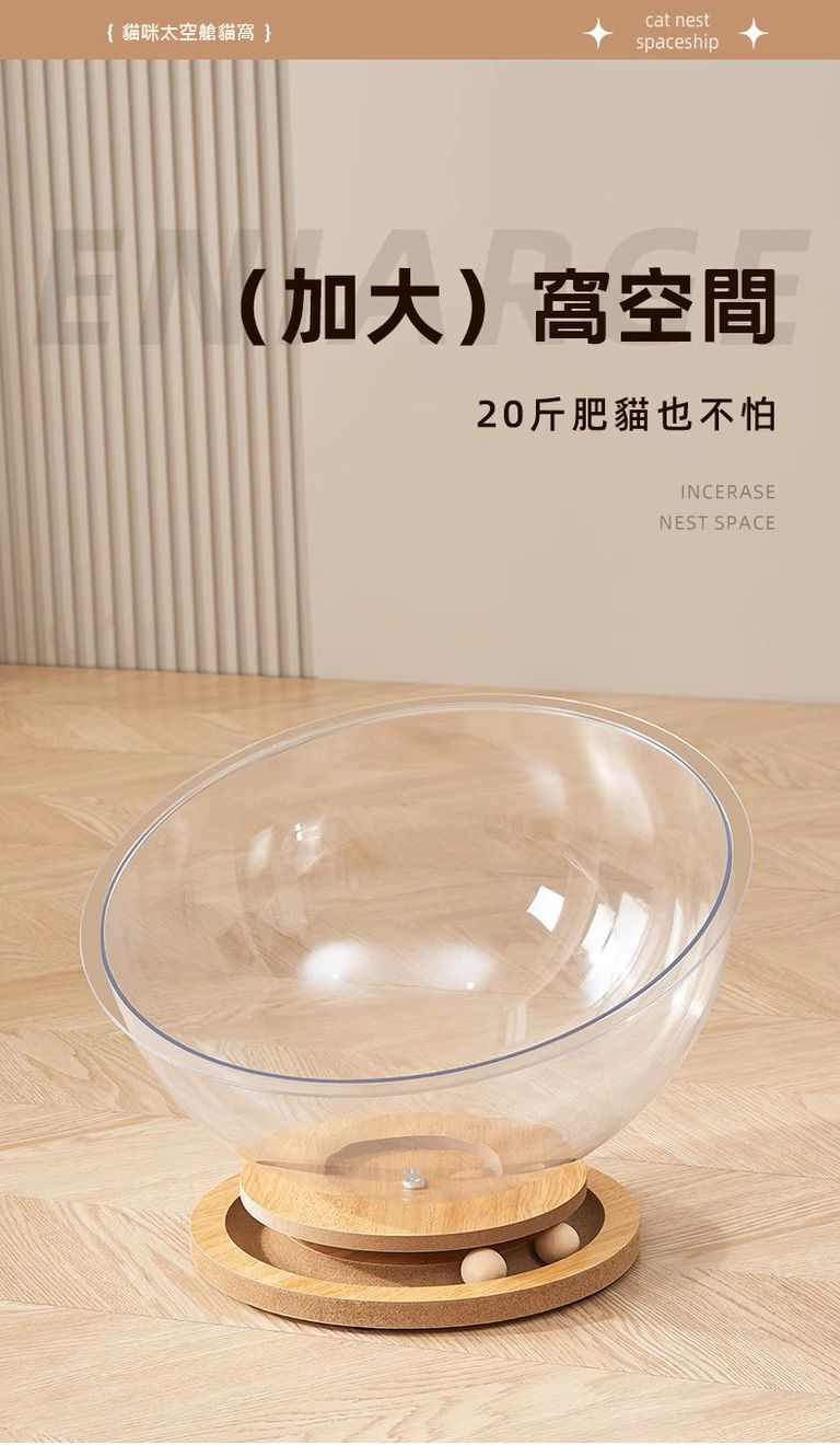 透明太空艙造型,美觀又有安全感:圓弧透明罩設計,視野開闊,貓咪休息時可安心觀察環境。