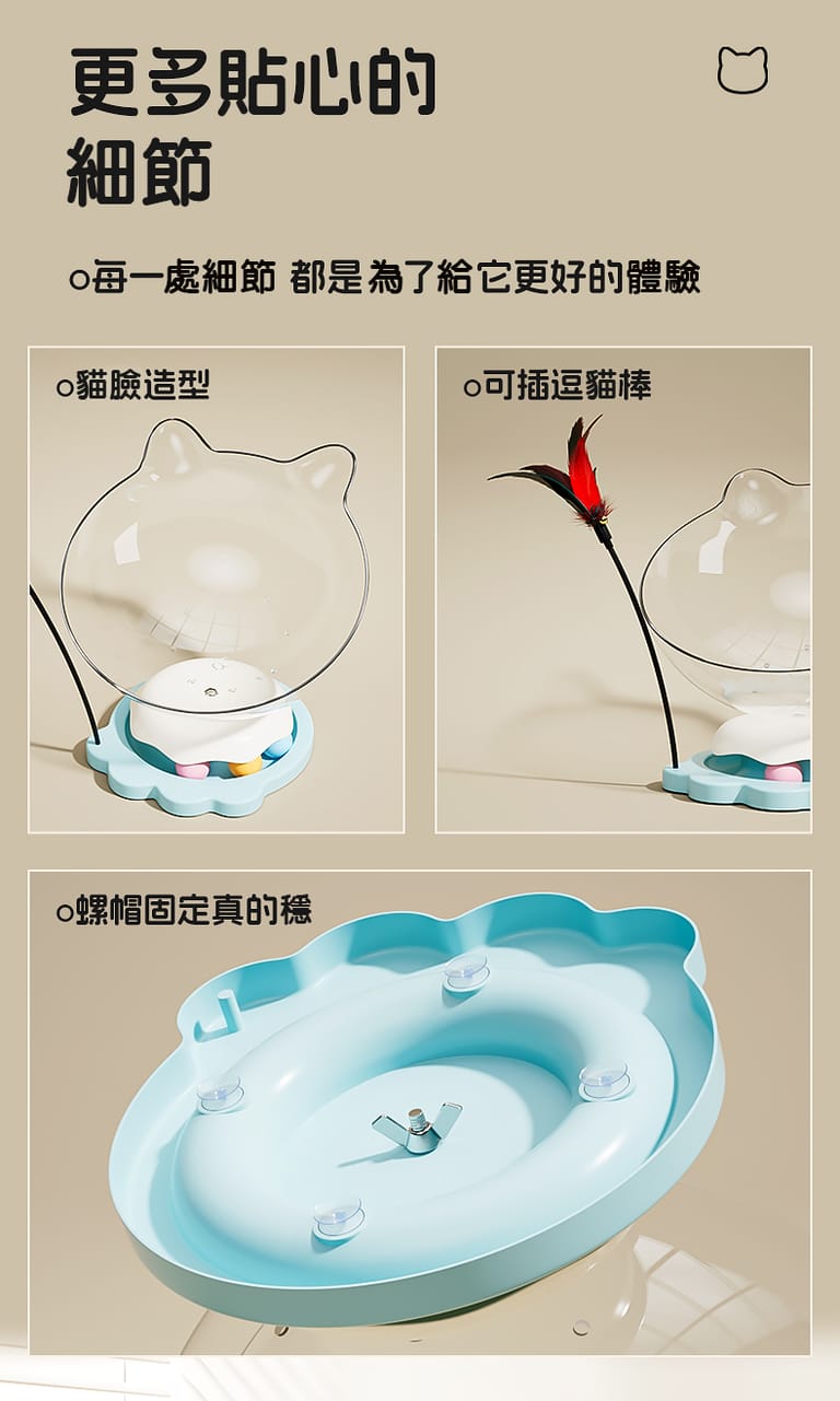 360°轉盤互動:小球滑動流暢,增加貓咪追逐與拍打的樂趣。